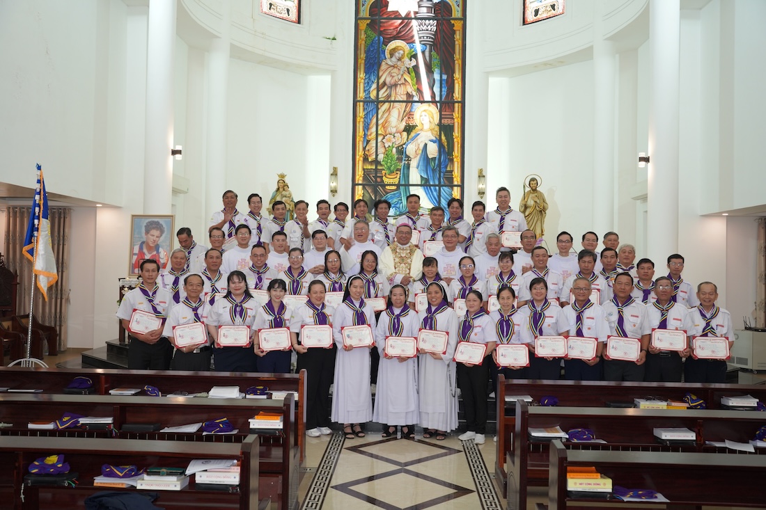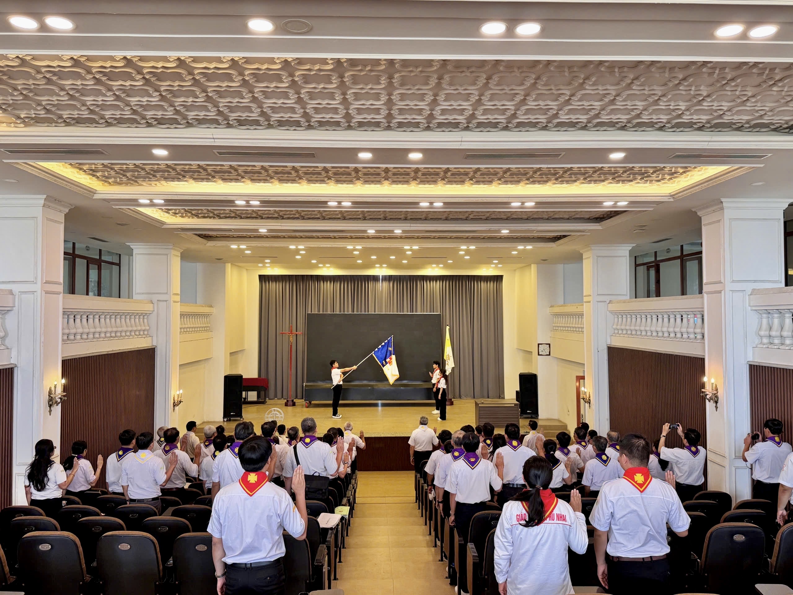 Sau bài giảng là nghi thức tuyên hứa long trọng, đánh dấu bước chuyển mình thiêng liêng của 43 Huấn luyện viên cấp 3, chính thức trở thành những Huấn luyện viên cao cấp của Thiếu nhi Thánh Thể Việt Nam.
