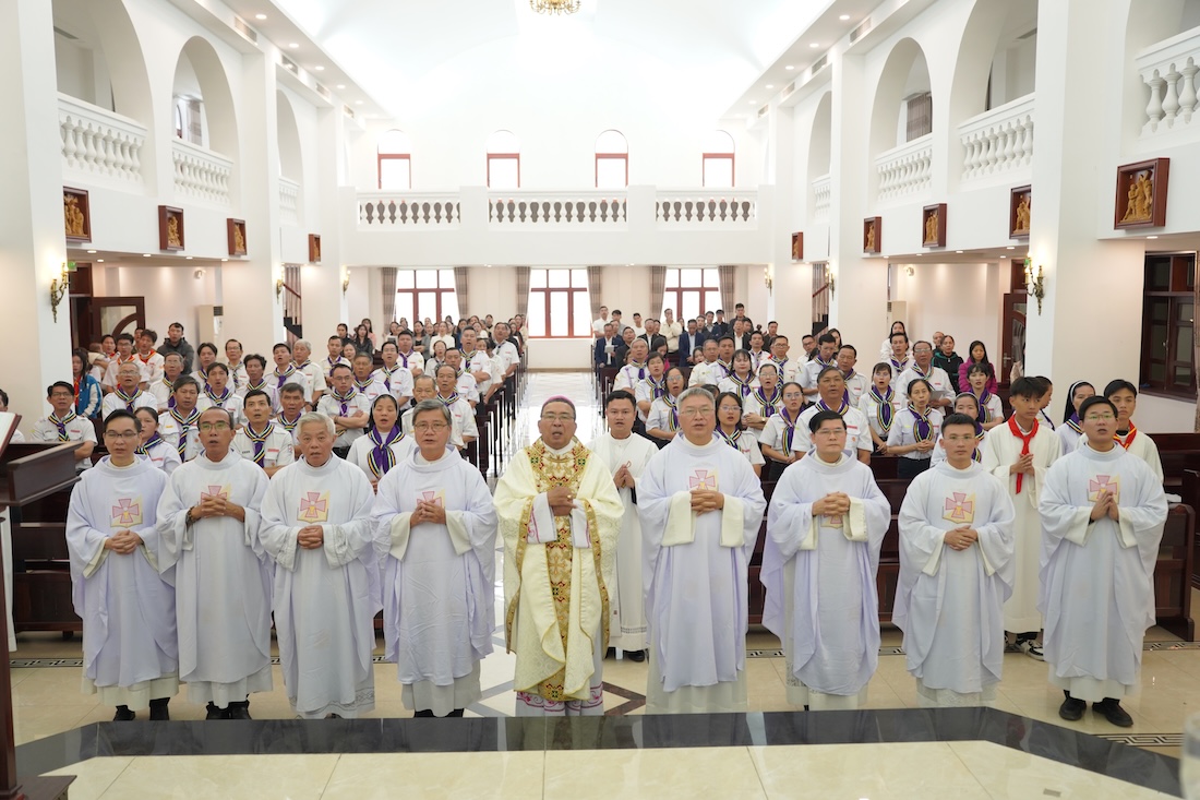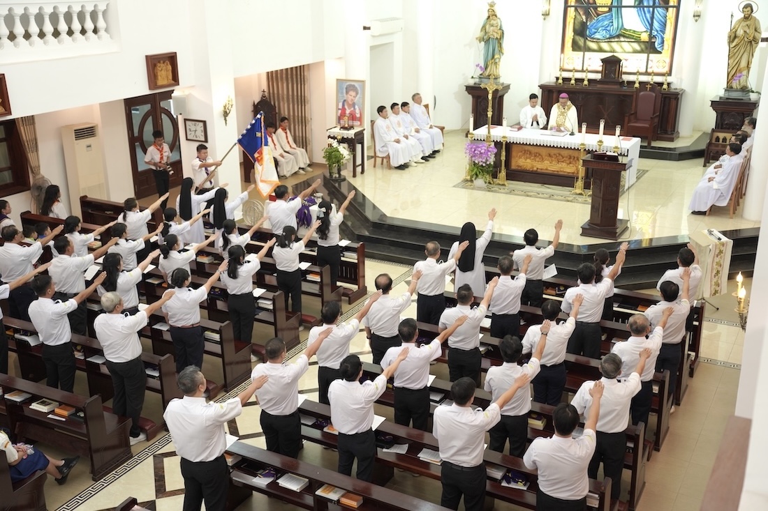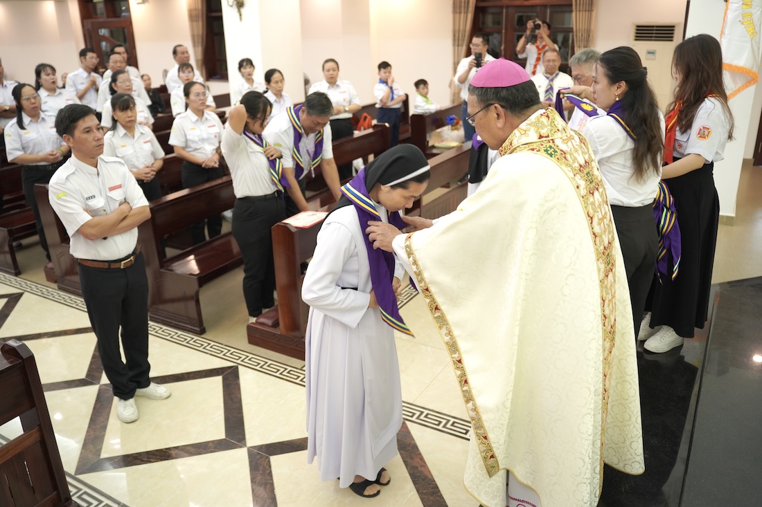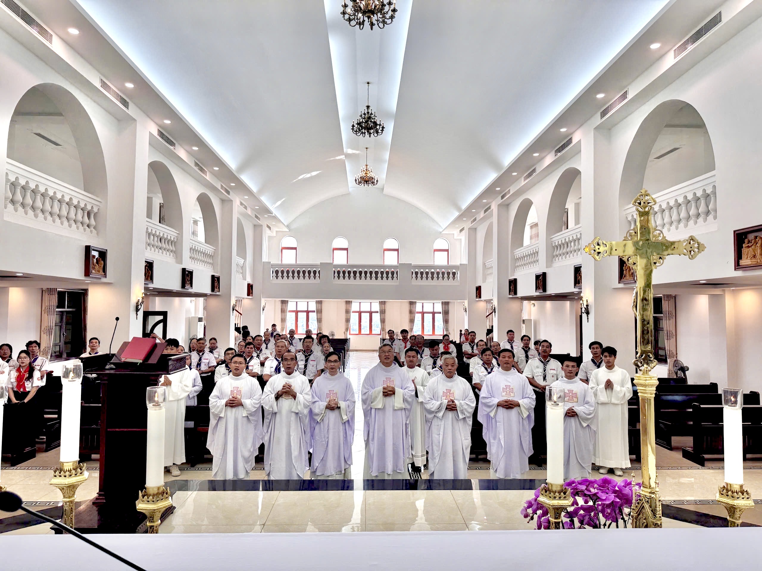 Thánh lễ do Đức Cha Vinh Sơn Nguyễn Văn Bản chủ sự, với sự hiện diện của quý Cha trong Ban Nghiên huấn Tổng Liên đoàn TNTT/VN, quý Cha trong giáo phận, cùng đông đảo cộng đoàn dân Chúa.